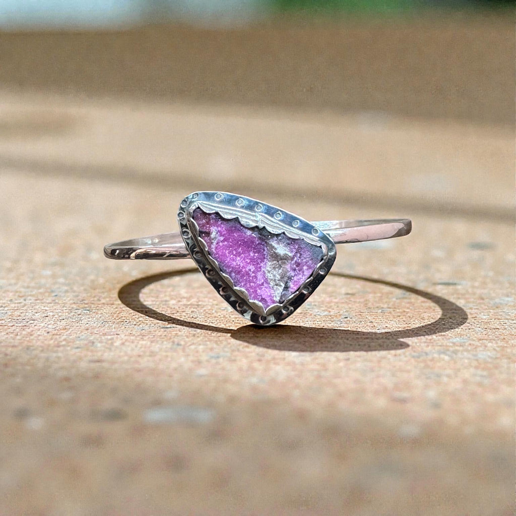This stunning sterling silver cuff features a vivid Pink Cobalto Calcite, a stone often associated with love, compassion, and emotional healing. Believed to support self-discovery and soothe the heart, it makes a meaningful statement both energetically and visually. Handcrafted as an original design by Mandalynn Jewelry Designs, this piece is as heartfelt as it is bold.