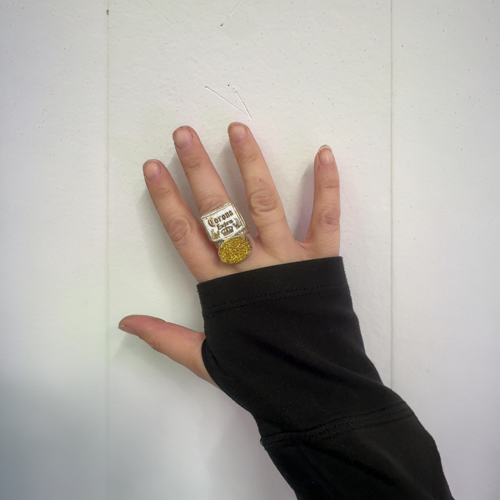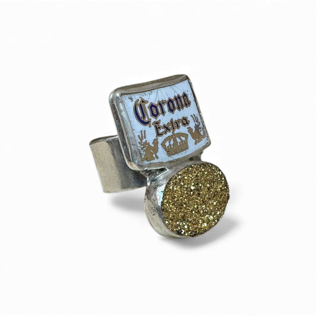 Sterling Silver with Gold Agate Druzy & Corona Extra Wide band, adjustable ring. Fits all sizes!