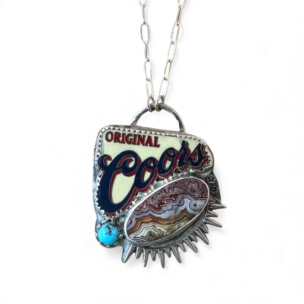 I’ve been collecting vintage lapel pins for over a decade (most of these are from the  1970s-1990s) mostly beer pins, with a few quirky treasures mixed in. A few years ago, I began transforming these nostalgic enamel pieces into handcrafted sterling silver jewelry. Recently, I started pairing them with gemstones to elevate each design even further, turning what were once free giveaway pins into bold, meaningful statement pieces.